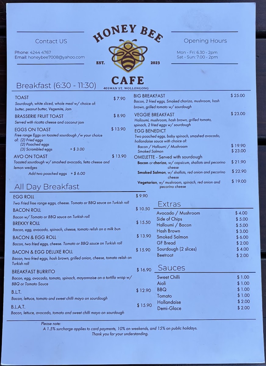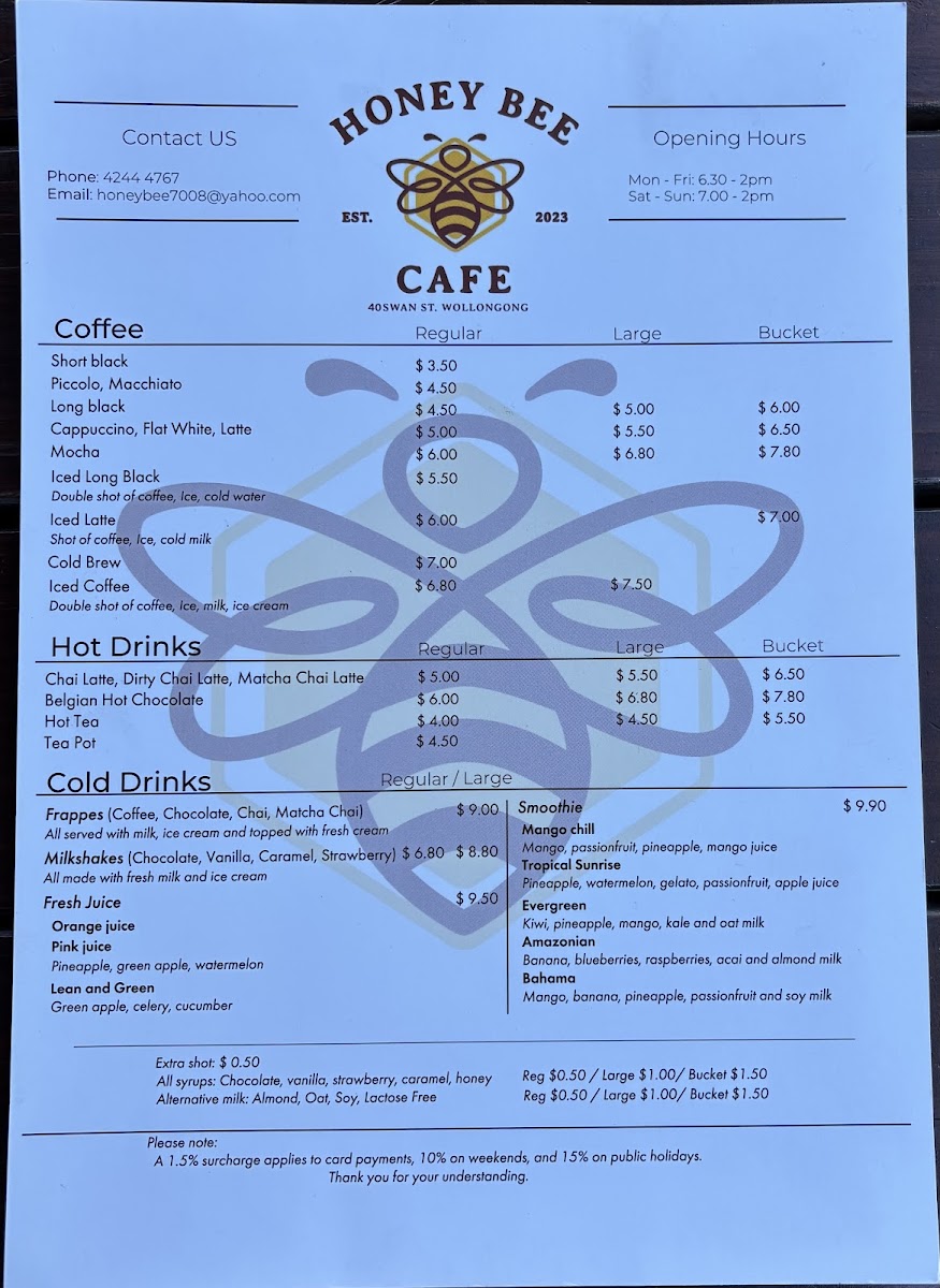 Welcome to Honey Bee Cafe, your go-to spot nestled in the heart of Wollongong at 40 Swan St. This charming cafe is more than just a place to grab a bite to eat; it's an experience that invites you to slow down and relish the moment.